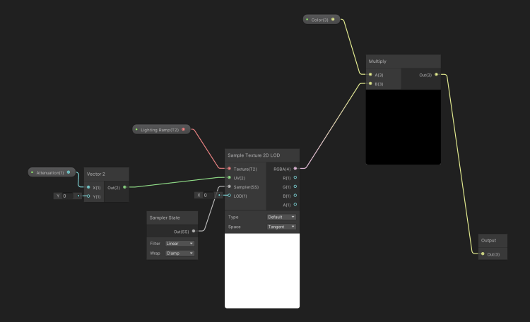 Another major component of the toon shader is the Light Ramp node that is is used to calculate the shading over objects in the scene.
